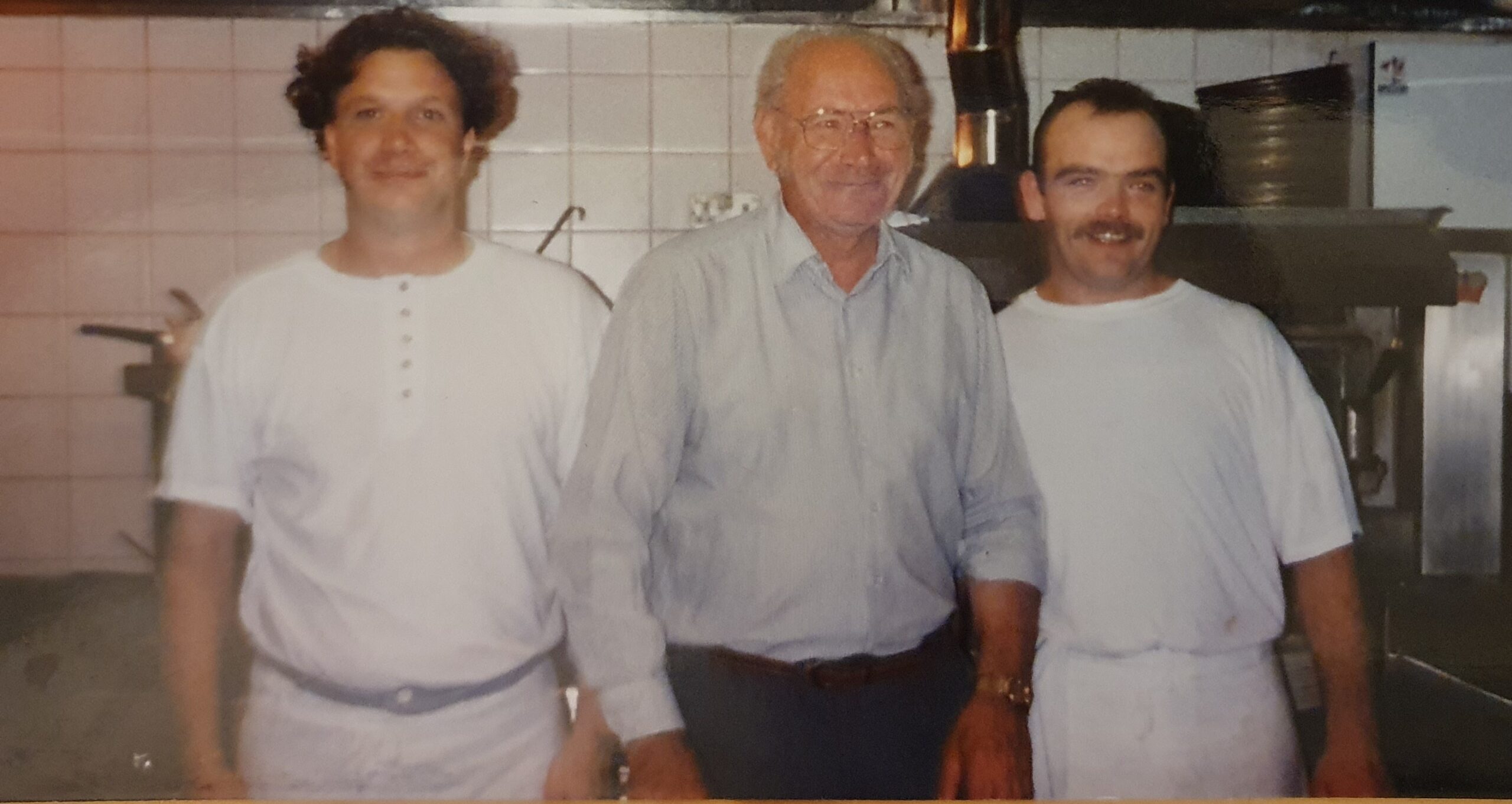 Throwing back to sunnier times, circa 1988 with Mike and Marc in the kitchen, and dear Umberto (Nonno) front of house. Mike (Andreina’s husband) and Marc formed a formidable partnership together in the kitchen spanning a 15-year period. Originally a successful builder, Mike made the decision to join the family business as he had always harboured ambitions to work with food, and loved the atmosphere and camaraderie within the pizzeria. A real character who had a passion for Italian food, it turns out Mike had an unlikely talent in the kitchen as a chef under Umberto’s guidance. Sadly Mike is not with us anymore but he’s always in our thoughts and his heart will always be in the pizzeria.